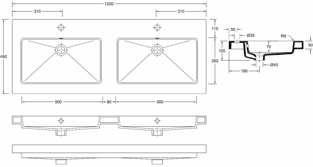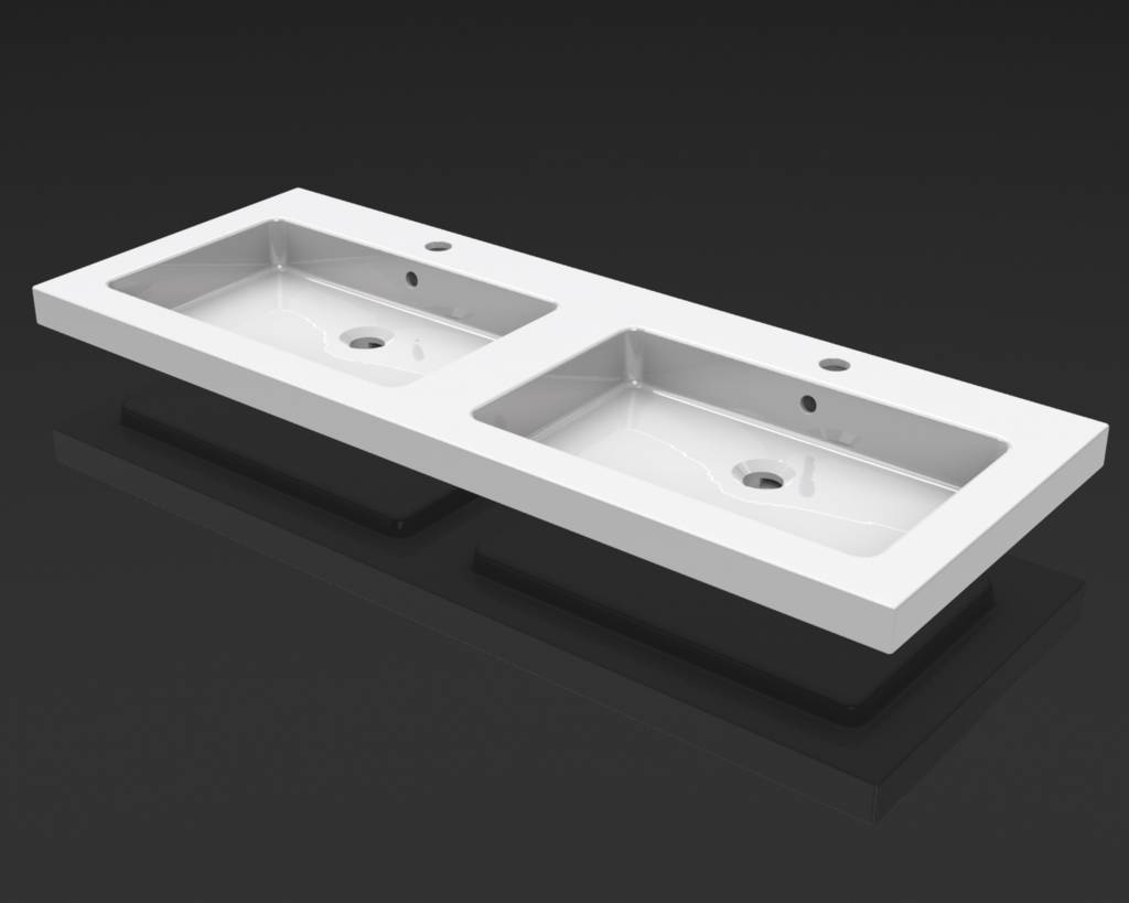 Wiesbaden keramische dubbele meubelwastafel, 120x46, inclusief 2 kr.gaten, hoogte: 50mm,