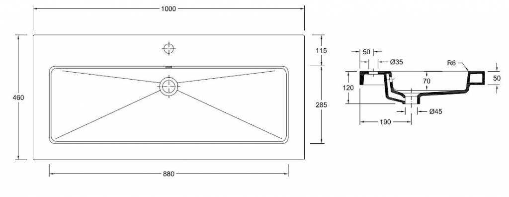 Wiesbaden keramische meubelwastafel 100x46 1 kr.gat