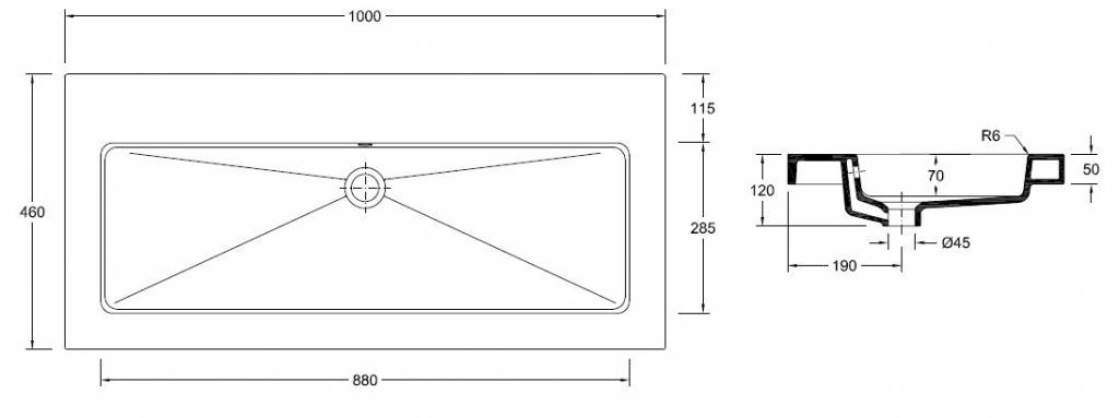 Wiesbaden keramische meubelwastafel 100x46 zonder kr.gat