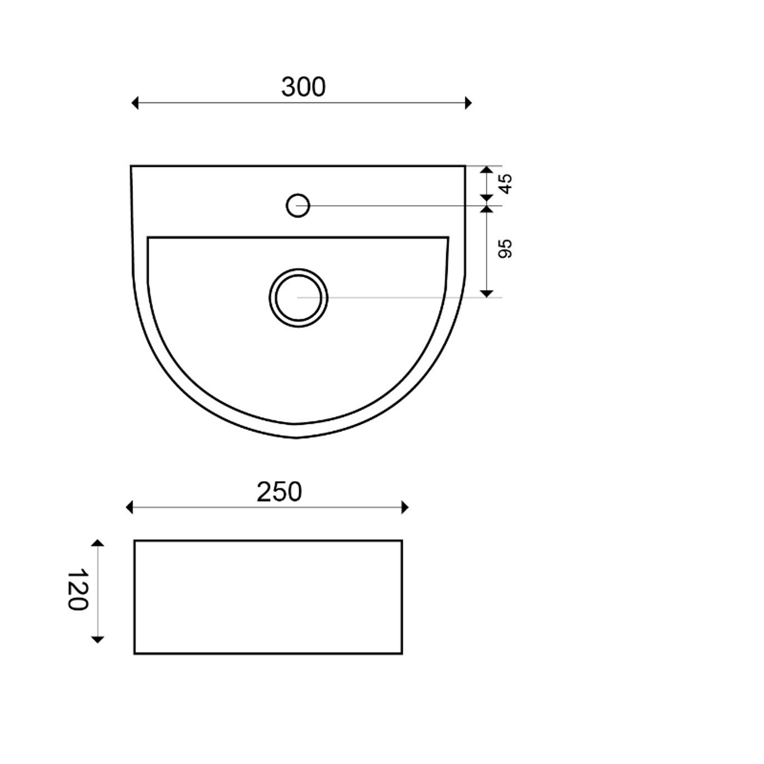 Lara halfrond fonteintje , 300x250x120 , wit, zonder overloop,