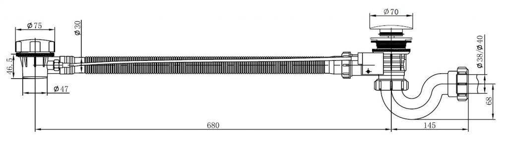 Een badplug met overloop aansluiting, de flexibele buis die de afvoer en overloop verbindt zorgt ervoor dat als u op de afvoer staat, deze niet afbreekt.
