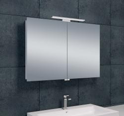 Luxe spiegelkast +Led verlichting 90x60x14cm <br>Inclusief stopcontact <br>Spiegel zowel aan buitenkant als binnenkant van de deur <br>Glazen leggers <br>Aluminium kast <br>Led verlichting