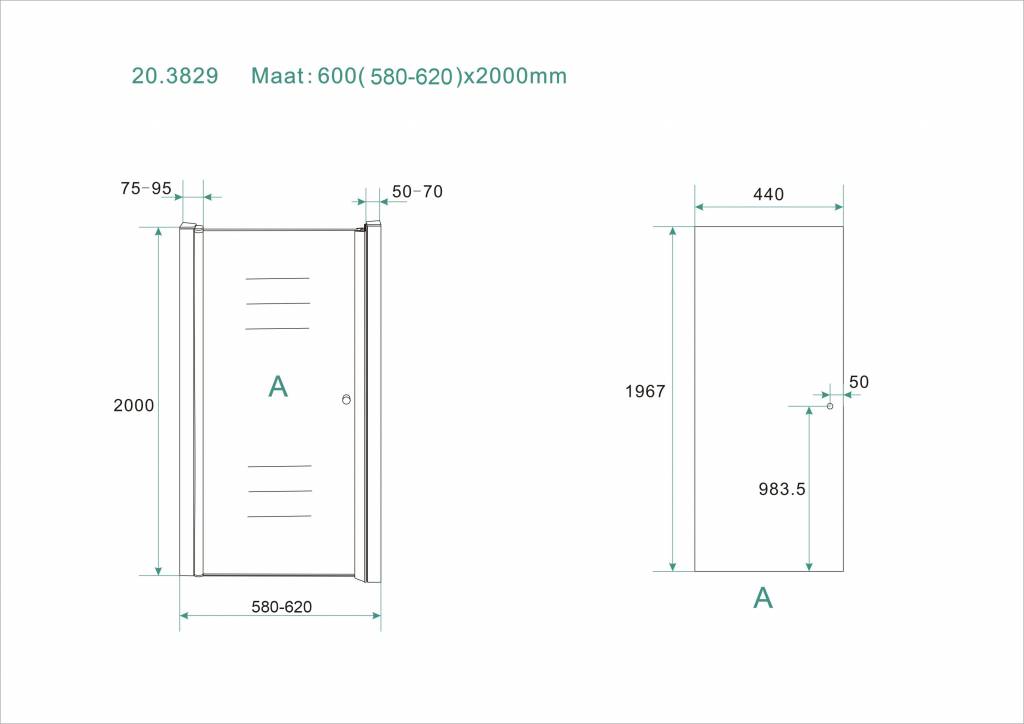 LET OP: Omdat de deur ook op een douchebak te plaatsen is zijn de afmetingen 2 á 3 cm kleiner als aangegeven op de specificaties
