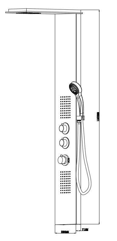 2 verticale douches, 1 horizontale hoofddouche en 1 losse handdouche