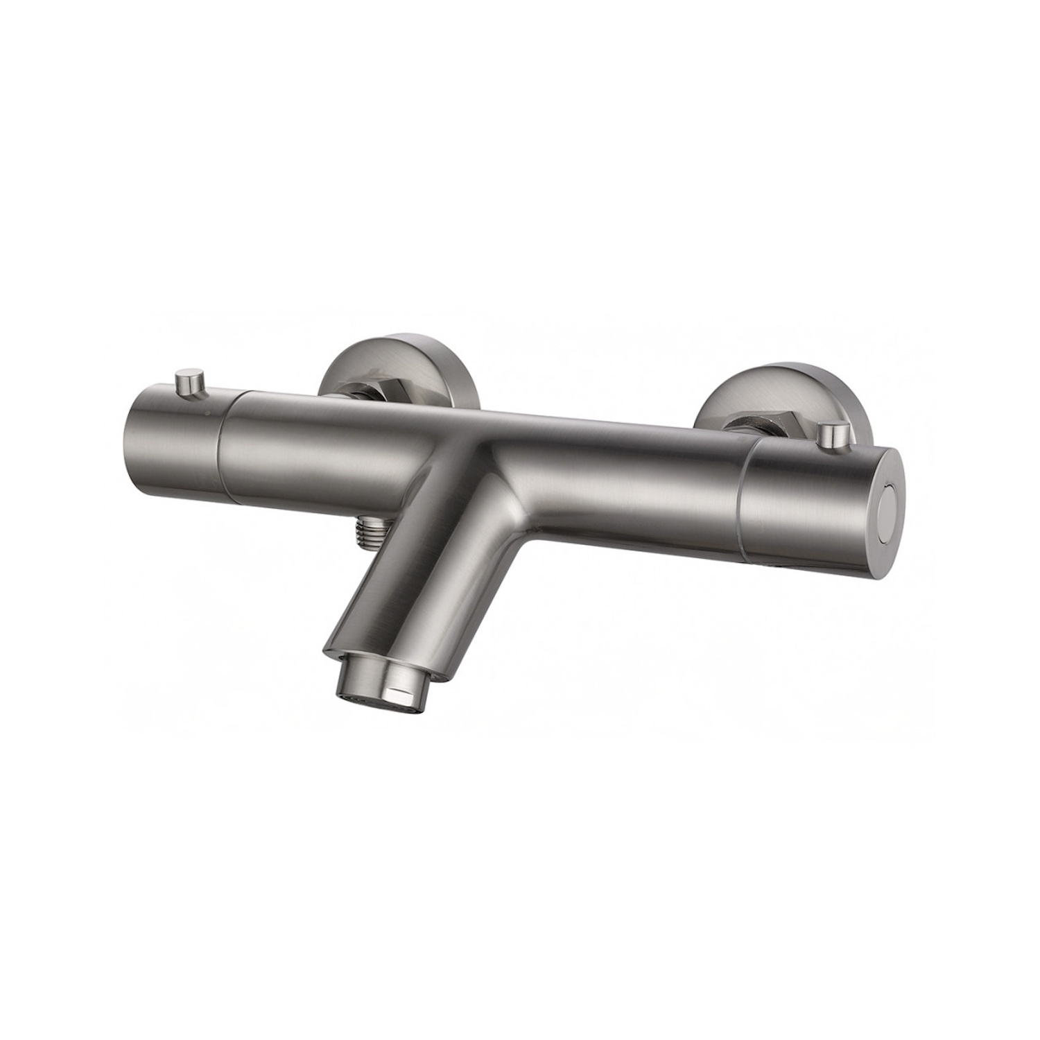 Thermostaat badkraan van het merk Rio staat garant voor kwaliteit en design. Dankzij de keramische schijven heeft de badkraan een soepele beweging van de knoppen. De HOH maat is 15cm en is daarom op vrijwel alle bestaande muurplaten te plaatsen. Het design van deze badkraan zorgt voor een mooie uitstraling in uw badkamer.Met de aan-en uitknop bepaalt u of het water uit de uitloop of uit de doucheslang komt.