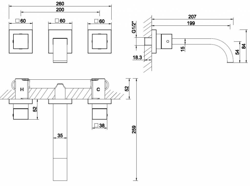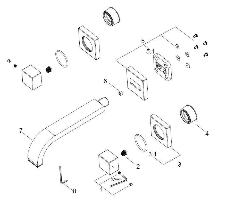 Rombo 2-knops wastafel-afbouwdeel, Te combineren met inbouwdeel 29.3100, inclusief 2 bedieningsknoppen en een uitloop van 20cm, chroom, , LET OP: Het inbouwdeel 29.3100 dient apart besteld te worden!,