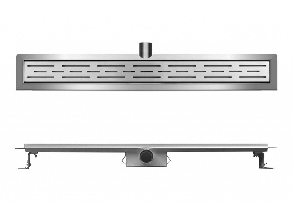 RVS 3e GENERATIE douchegoot (inclusief RVS rooster), 40mm zij-aansluiting, met uitneembaar RVS waterslot, met uitneembaar haarfilter, inclusief verloopmof 40/50mm, waterdicht membraan meegeleverd, Mooi afgewerkte randen, verstelbare poten, 70cm lang, 7cm