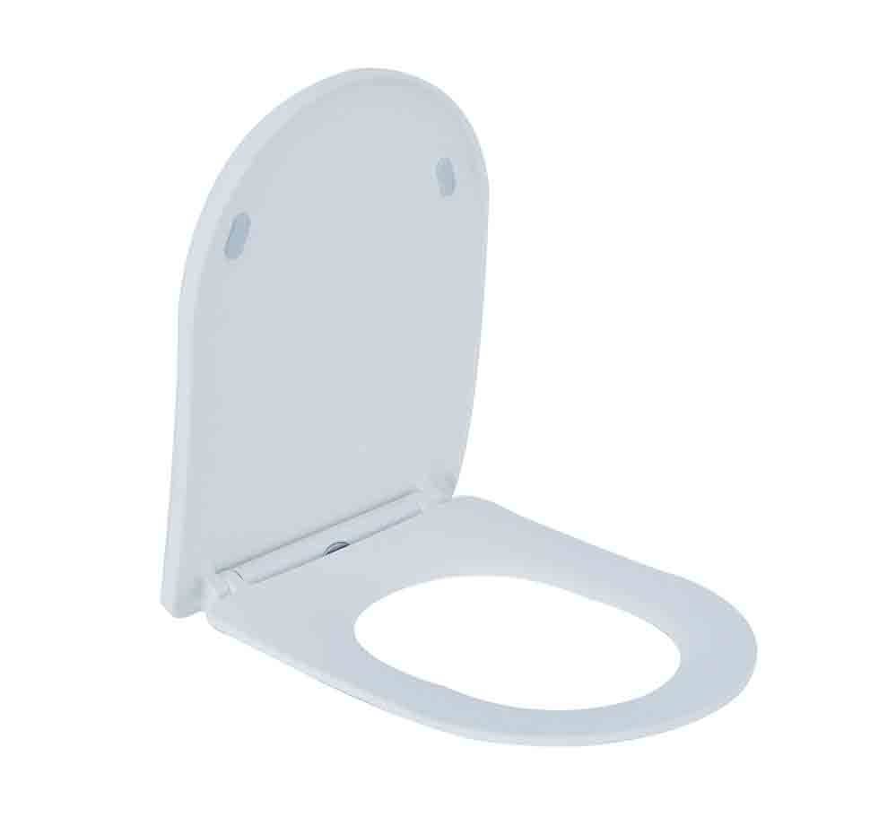 Toiletzitting+deksel mat-wit, Voorzien van Quick-Release bevestigingset en softclose functie. Verpakt in doos met plastic handvat. Materiaal Duroplast. Gewicht 2,2 kg.