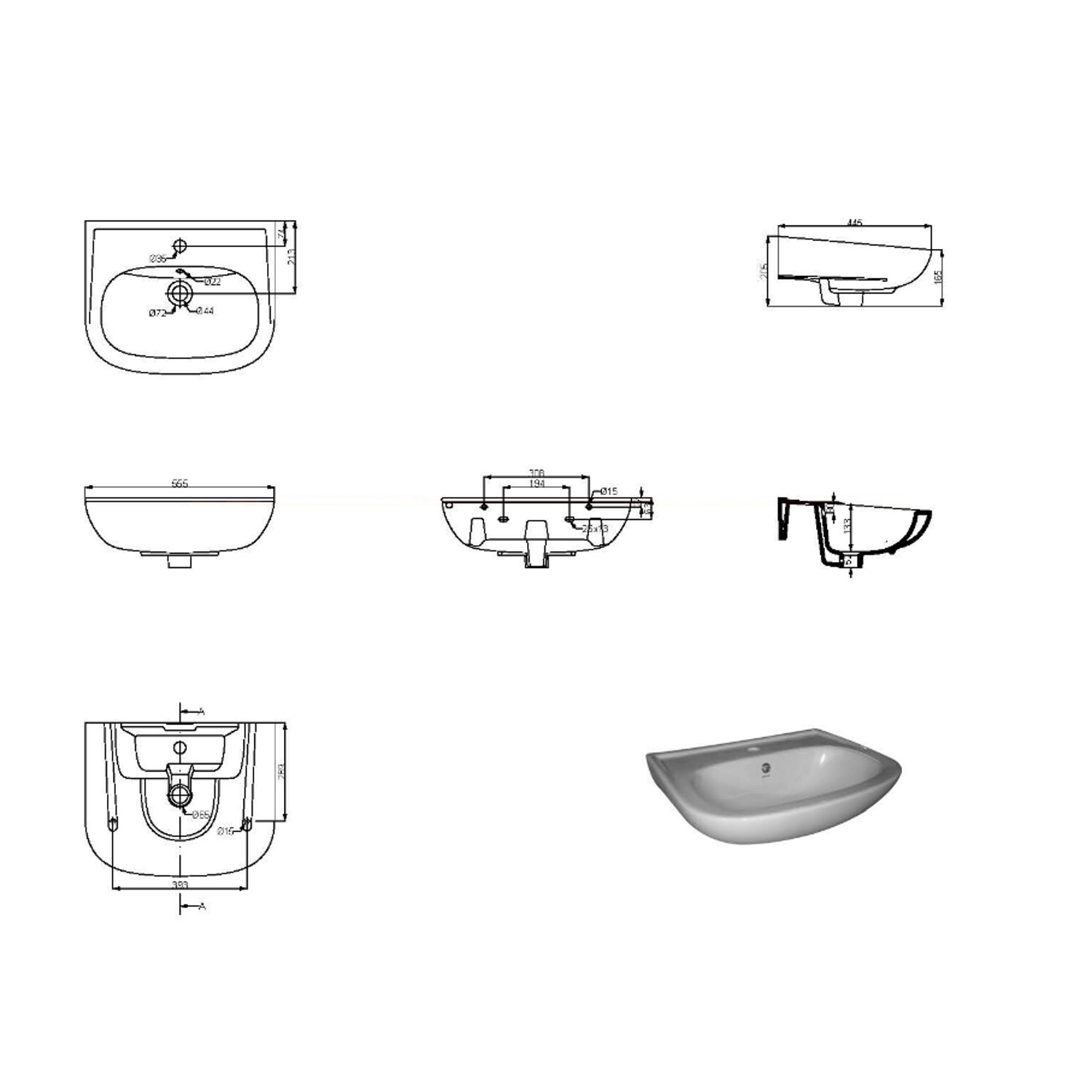Trevi wastafel 56x45 wit