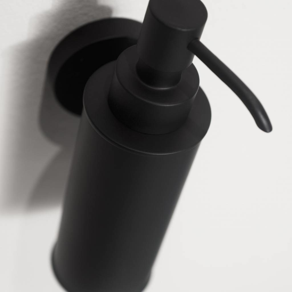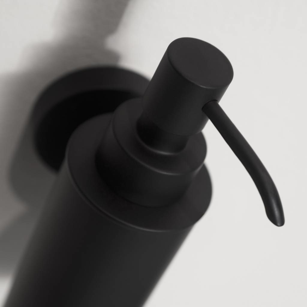 Heerlijk je handen schoonwassen. Dat wordt een stuk gemakkelijker met de Zeepdispenser van Metaal Mat Zwart. Dit mooie ontwerp geeft een stijlvolle uitstraling aan uw badkamer. De zeepdispenser is te bevestigen aan de muur.