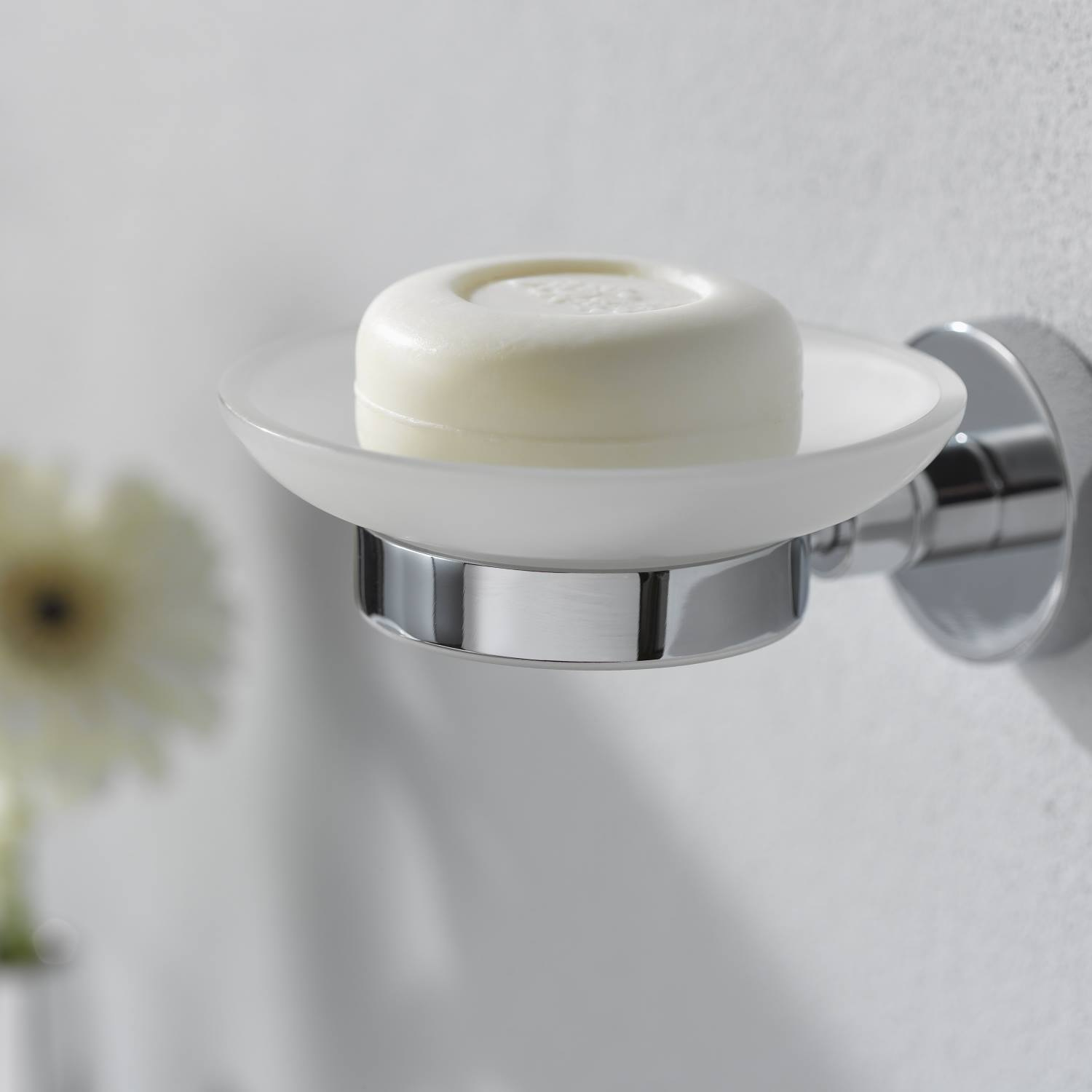 Deze stijlvolle zeephouder - uitgevoerd in mat glas - is een fraaie aanwinst in elk toilet en bij elk badkamermeubel. Door de zwarte rubberen ring wordt het schaaltje goed vastgeklemd.