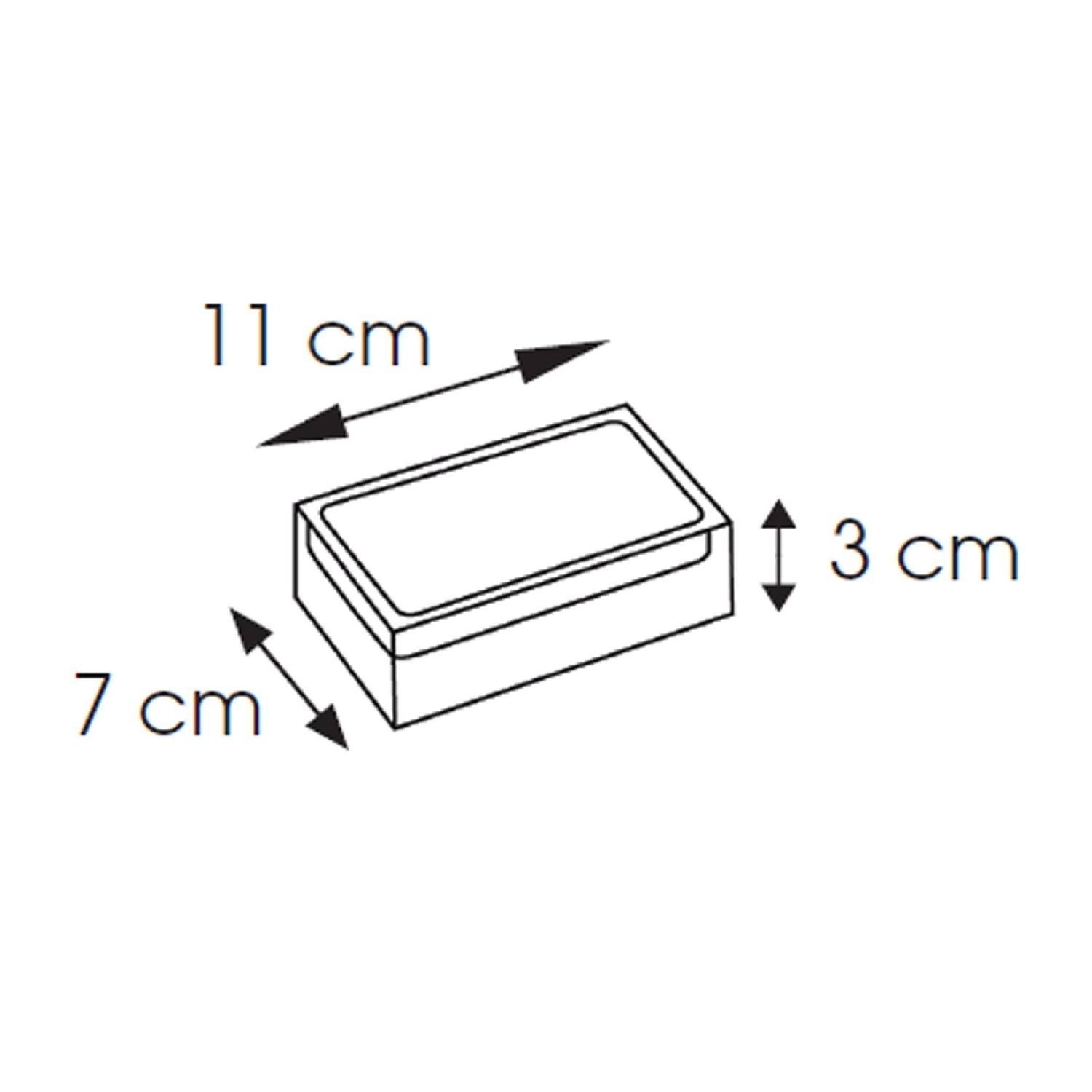 De zeephouder heeft een breedte van 11 cm, een diepte van 7 cm en een hoogte van 3 cm.