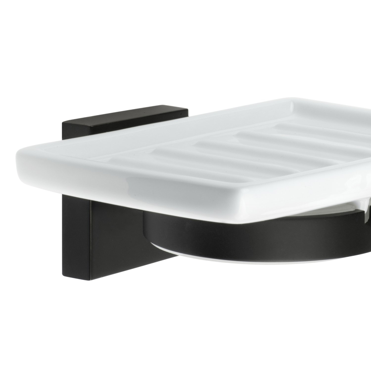 Deze moderne met mat zwart afgewerkte zeephouder van Smedbo is een prachtige aanvulling in elke badkamer of toilet. De zeephouder heeft een breedte van 12 cm, een hoogte van 4,5 cm en is gemaakt van hoogwaardige messing.