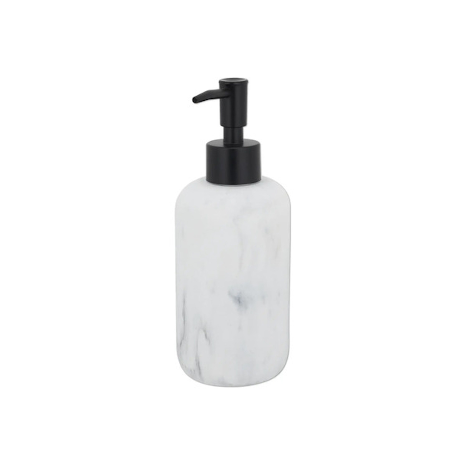 Deze vrijstaande zeepdispenser van het merk Haceka uit de serie Marmer zorgt voor een trendy en decoratieve uitstraling in uw badkamer of toilet. De Marmer wit gekleurde zeepdispenser is gemaakt van ABS-kunststof en Polyhars. Polyhars is een mengsel van gemalen natuursteen vermengd met een vloeibare kunsthars. Hierdoor is de zeepdispenser steenhard, vochtbestendig en kleurvast. Ideaal voor gebruik in uw toilet of badkamer.
