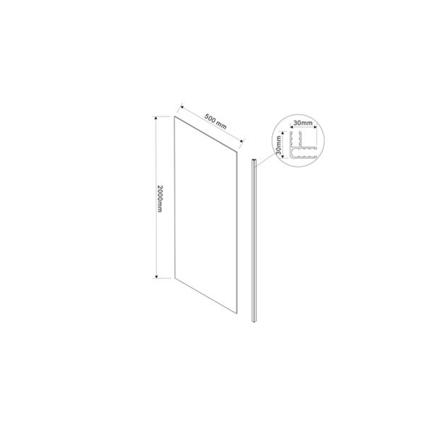 De zijwand heeft een breedte van 50 cm en een hoogte van 200 cm. De zijwand is voorzien van 8 mm veiligheidsglas. Verder is de douchewand behandeld met een EasyClean coating wat er voor zorgt dat vuildeeltjes als kalk, olie, zeepresten en vet minder snel hechten.