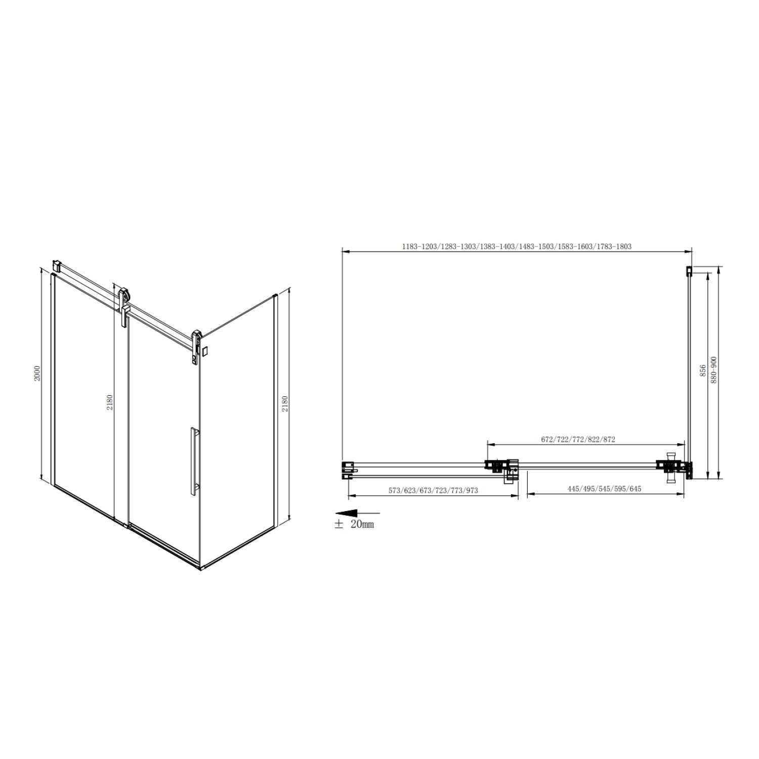 Omdat de zijwand ook op een douchebak te plaatsen is, wijken de afmetingen 2 tot 3 cm af als aangegeven in de specificaties.