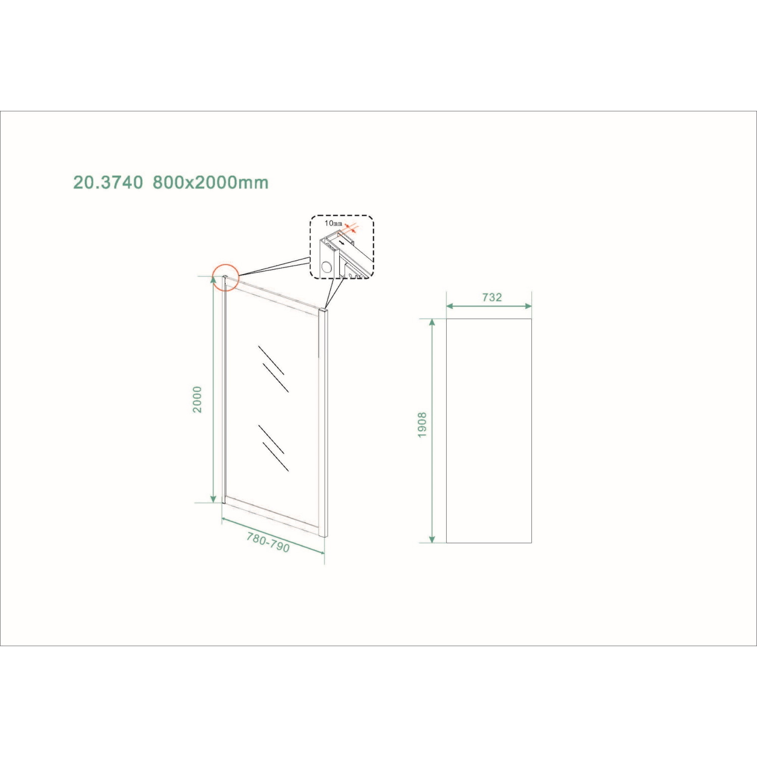 Specificaties Zijwand Wiesbaden Skyline Voor Douchedeur 80x200 cm 8 mm NANO Coating Mat Zwart: